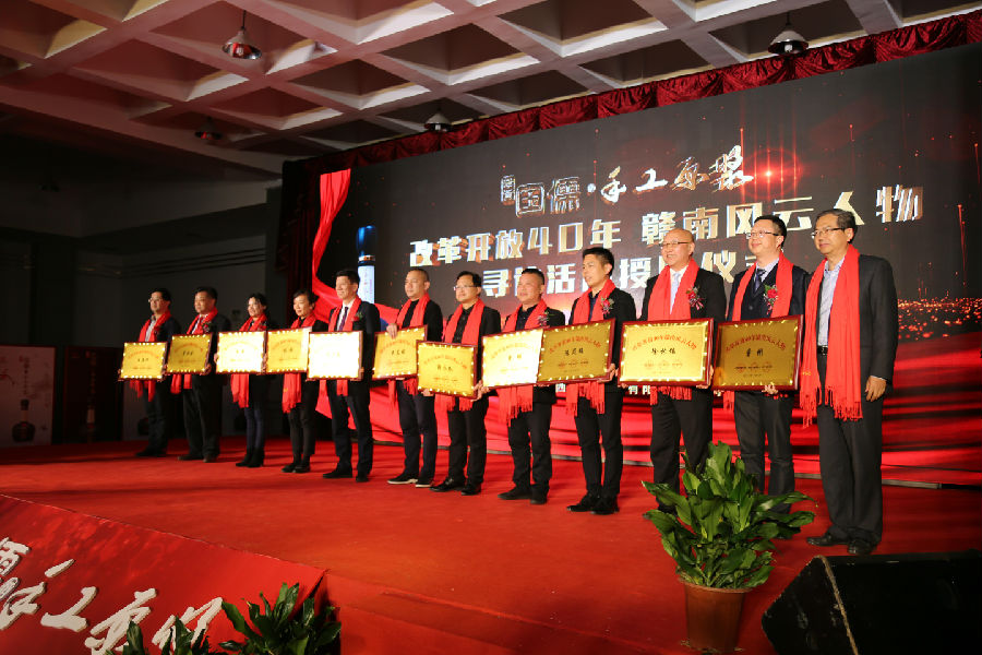 由中共贛州市委宣傳部、贛州市工商聯、贛州廣播電視臺主辦,江西章貢酒業有限責任公司協辦的“改革開放四十年贛南風云人物”尋訪活動授牌儀式,3月15日在章貢酒業公司隆重舉行。會上,中共贛州市委常委、宣傳部部長彭業明,贛州市政協副主席、工商聯會長華旭明為濃縮著贛南改革開放的輝煌成就的二十二位“改革開放四十年贛南風云人物” 授牌。江西燕興物業管理有限公司黨委書記、董事長劉燕獲此殊榮并出席授牌儀式。