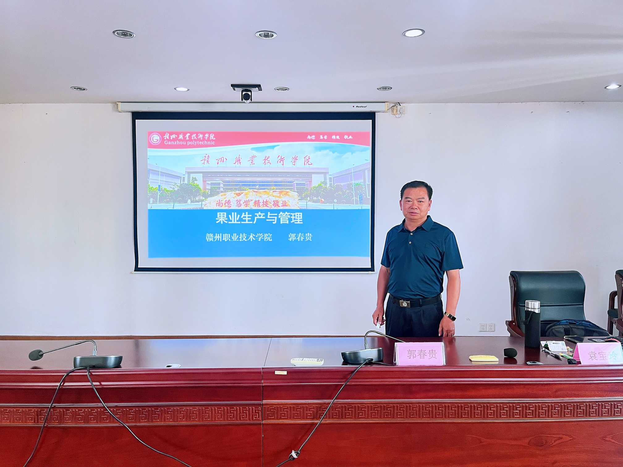 在專題講座環(huán)節(jié),學(xué)校特邀業(yè)內(nèi)權(quán)威專家授課,為學(xué)員們帶來了一場場 “知識盛宴”。贛州職業(yè)技術(shù)學(xué)院正高級講師郭春貴老師,同時(shí)身兼贛州市百名農(nóng)業(yè)專家、贛州市科普大使、江西省教育督導(dǎo)專家、省科技評審專家等多重身份,他憑借豐富的理論知識和實(shí)踐經(jīng)驗(yàn),圍繞園林花卉、果樹、蔬菜生產(chǎn)技術(shù)指導(dǎo)等核心內(nèi)容進(jìn)行深入淺出的講解,幫助學(xué)員們系統(tǒng)更新理論儲備,拓寬專業(yè)視野。此外,信豐縣農(nóng)伯樂蔬菜專業(yè)合作社理事長賴煥華也結(jié)合自身創(chuàng)業(yè)經(jīng)歷,分享了蔬菜種植管理、合作社運(yùn)營等實(shí)戰(zhàn)經(jīng)驗(yàn),為學(xué)員們提供了接地氣的實(shí)用技巧。