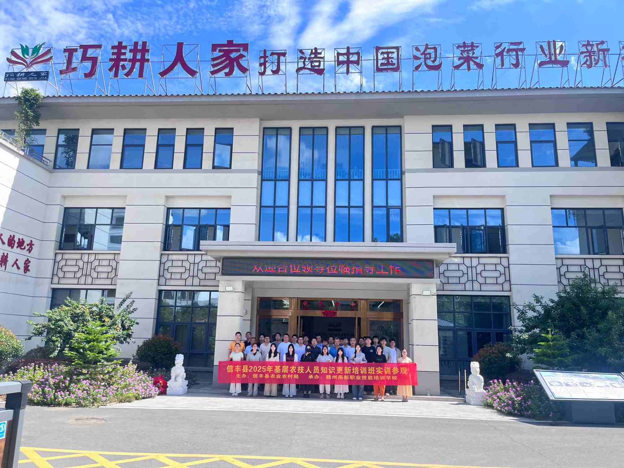 現(xiàn)場教學(xué)環(huán)節(jié)更是讓學(xué)員們直呼 “收獲頗豐”。在學(xué)校的精心安排下,學(xué)員們先后走進(jìn)多家知名農(nóng)業(yè)企業(yè)和示范基地,近距離學(xué)習(xí)先進(jìn)技術(shù)和管理經(jīng)驗(yàn):在贛州巧耕人家農(nóng)業(yè)發(fā)展有限公司,大家深入蔬菜種植基地和加工廠,詳細(xì)了解農(nóng)產(chǎn)品加工與銷售流程,重點(diǎn)學(xué)習(xí)了乳酸菌發(fā)酵菜腌制工藝技術(shù),掌握了提升蔬菜附加值的實(shí)用方法;在尋烏縣羊角園果蔬有限公司,學(xué)員們實(shí)地考察特色農(nóng)業(yè)種植模式,學(xué)習(xí)了特色果蔬品種選育、高效栽培等先進(jìn)技術(shù);在江西果然食品有限公司和安遠(yuǎn)縣橙皇現(xiàn)代農(nóng)業(yè)發(fā)展有限公司,大家聚焦農(nóng)產(chǎn)品加工技術(shù)與品牌營銷,探索了從 “田間” 到 “餐桌” 的產(chǎn)業(yè)鏈打造路徑;在中國贛南臍橙產(chǎn)業(yè)園(安西)及柑橘農(nóng)業(yè)科技示范基地,學(xué)員們沿著贛南臍橙的發(fā)展歷程,學(xué)習(xí)了臍橙標(biāo)準(zhǔn)化種植、病蟲害綠色防控等先進(jìn)技術(shù),深刻感受到特色產(chǎn)業(yè)對鄉(xiāng)村振興的帶動作用;在中科微至&江西綠萌智能裝備(華南)制造中心項(xiàng)目現(xiàn)場,大家參觀了果蔬采后處理設(shè)備、設(shè)施農(nóng)業(yè)裝備生產(chǎn)基地,直觀了解了智能裝備在農(nóng)業(yè)生產(chǎn)中的應(yīng)用,認(rèn)識到科技賦能農(nóng)業(yè)的重要性;最后,在信豐金海農(nóng)業(yè)服務(wù)專業(yè)合作社糧油基地,學(xué)員們學(xué)習(xí)了糧油作物主導(dǎo)產(chǎn)業(yè)主推技術(shù),為今后開展糧油生產(chǎn)技術(shù)推廣工作奠定了堅(jiān)實(shí)基礎(chǔ)。